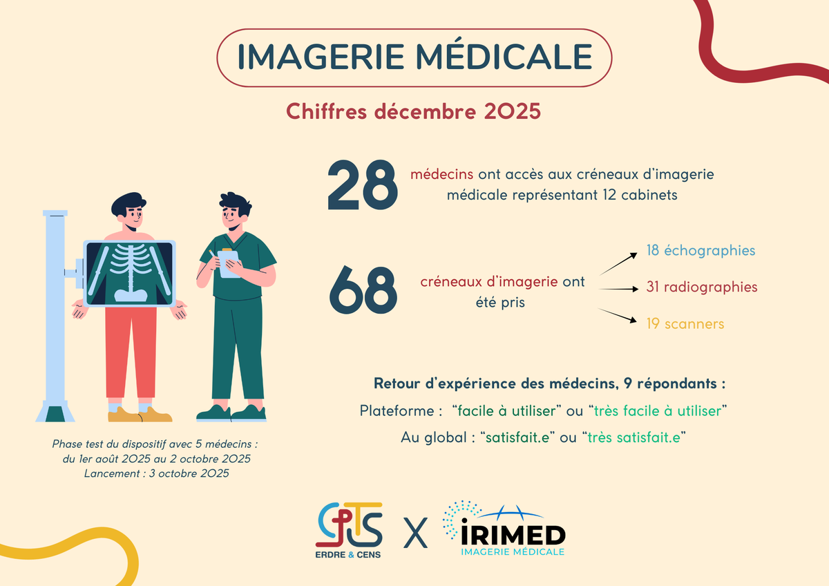La CPTS Erdre et Cens et le centre IRIMED Imagerie Médicale ont noué un partenariat pour mettre en place une organisation coordonnée entre les radiologues et les médecins généralistes du territoire afin d'améliorer l'accès à l'imagerie médicale.